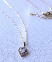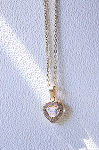 CADENA ACERO INOX. DORADO C/ DIJE CORAZON Y HALO PIEDRAS BLANCAS