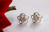AROS EN PLATA DISEÑO FLOR CIRCON RD CENTRAL Y PETALOS SILUETA