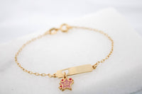Pulsera infantil enchapada con placa y con dije estrella esmaltado